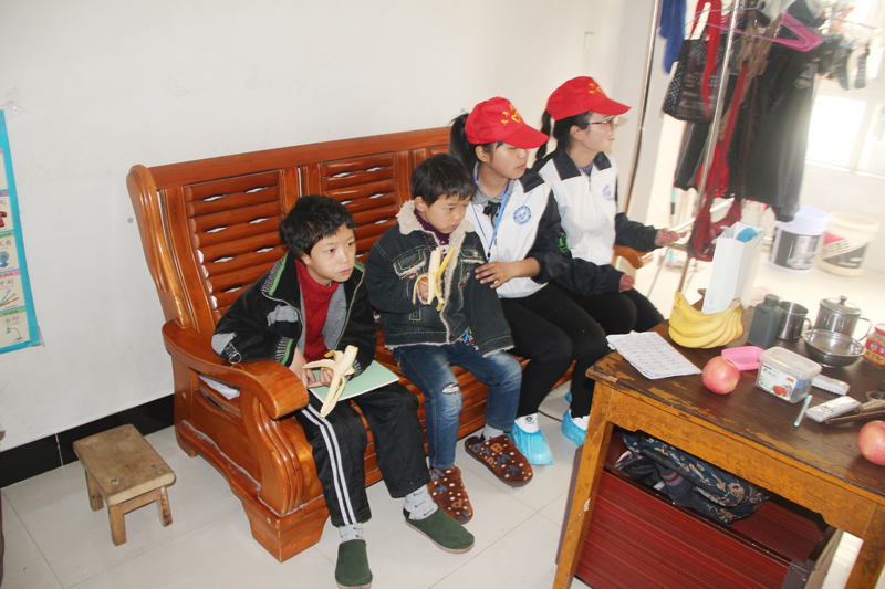 志愿者们陪周鑫一起看电视